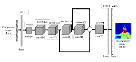 Compressive sensing is a useful technique that allows to simplify the hardware of a data acquisition system. On the other hand, this technique requires the application of an advanced signal processing. In the visual image processing, the ℓ1 magic algorithm is widely used [33]. A new approach presented in this research is based on deep-learning neural network image reconstruction. A simple CNN based on the decoder architecture was used as shown in Fig. 2.