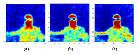 Simulations were performed for 3 different compression ratios CR = 7.8125%, 15.6250%, and 23.4375%. This means that the original 80 × 80 IR images have been compressed into vectors of 500, 1000, and 1500 elements. Each element was calculated as the average value of randomly selected pixels from the 80 × 80 IR image. A test dataset of 50 IR images acquired by a self-developed low-cost camera [37] was used to average the results and validate quantitatively the image decompression. To present the difference in the operation of ℓ1 and CNN reconstruction algorithms, 3 IR images were selected for detailed analysis – Fig. 3.